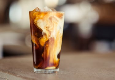 Espresso con leche vaporizada, syrup de Caramel y hielo.