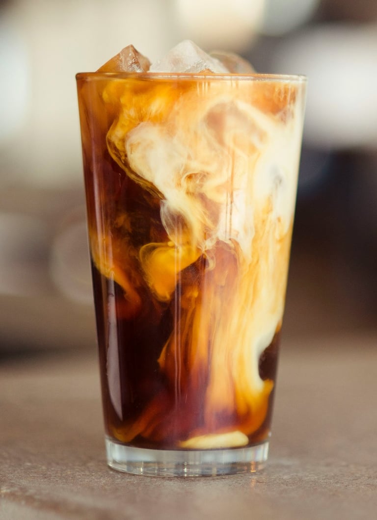 Espresso con leche vaporizada, syrup de Pistacchio y hielo.
